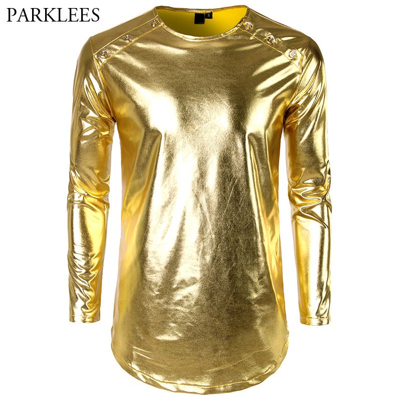 Shiny Gold Metallic Longline T Shirt Men 2018 Brand New Night Club Mens T Shirts Casual O Neck Hip Hop Top Tees Party Dance Show Under 50 From Chencloth66 Dhgate Com